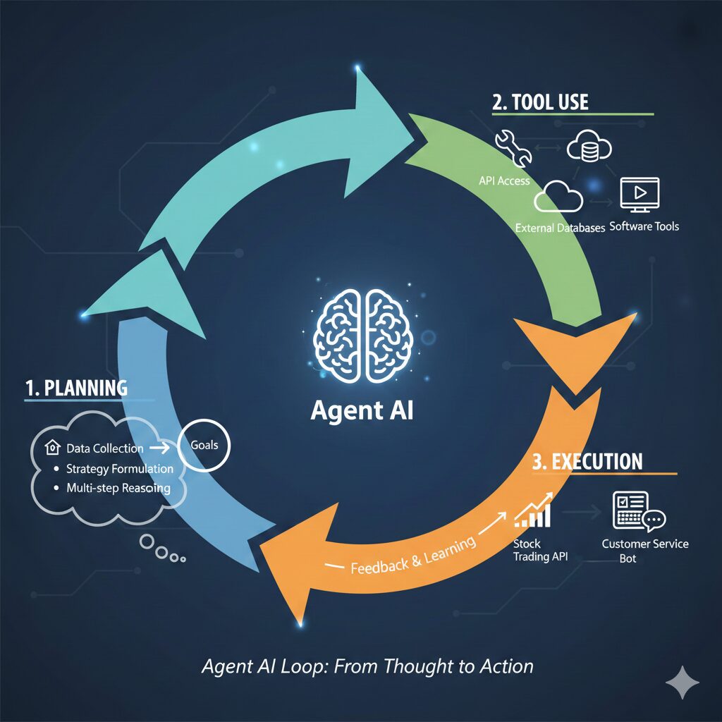에이전트 AI는 이제 글만 쓰는 것이 아니라, **’데이터를 스스로 수집’하고, ‘외부 도구를 자율적으로 사용’하며, ‘실제 시스템에 명령을 실행’**하는 **’앵벌이 노동자’**로 변모해야 합니다.